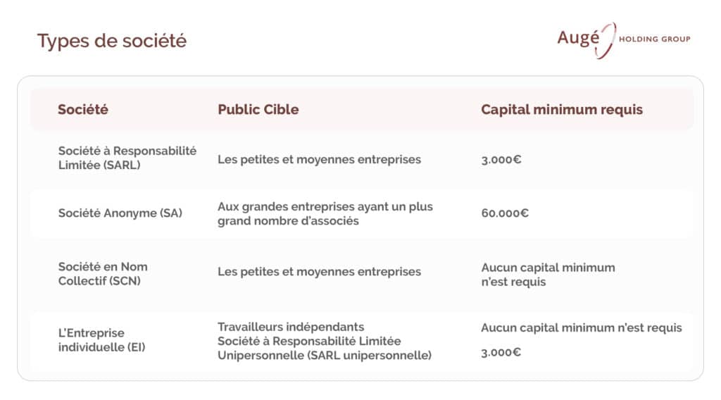 Une structure très courante pour les petites et moyennes entreprises. Aucun capital minimum n’est requis pour sa création.